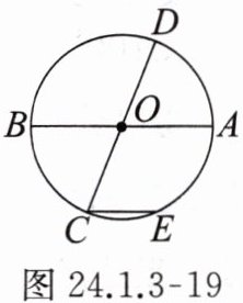 7. 如图24.1.3-19所示,AB,CD是⊙O的两条直径,CE//AB,求证:$\overset{\frown}{BC} = \overset{\frown}{AE} = \overset{\frown}{AD}$.