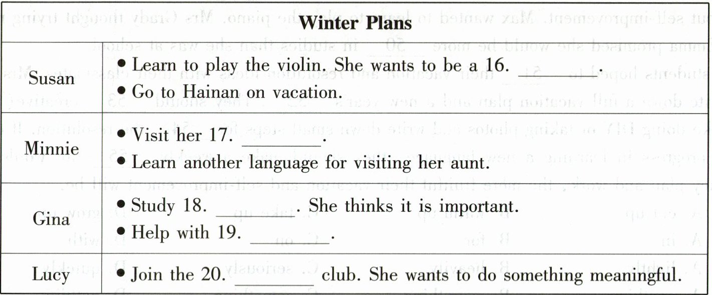 第三节 听下面一篇短文。请用你所听到的内容,填写表格中所缺单词,每空限填一词。短文读两遍。