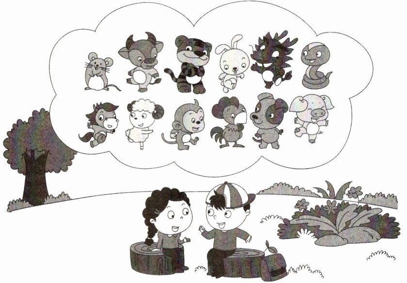 Yangyang:They are the Rat,Ox,Tiger,Rabbit,Loong,Snake,Horse,Sheep,Monkey,Rooster,Dog,and Pig.