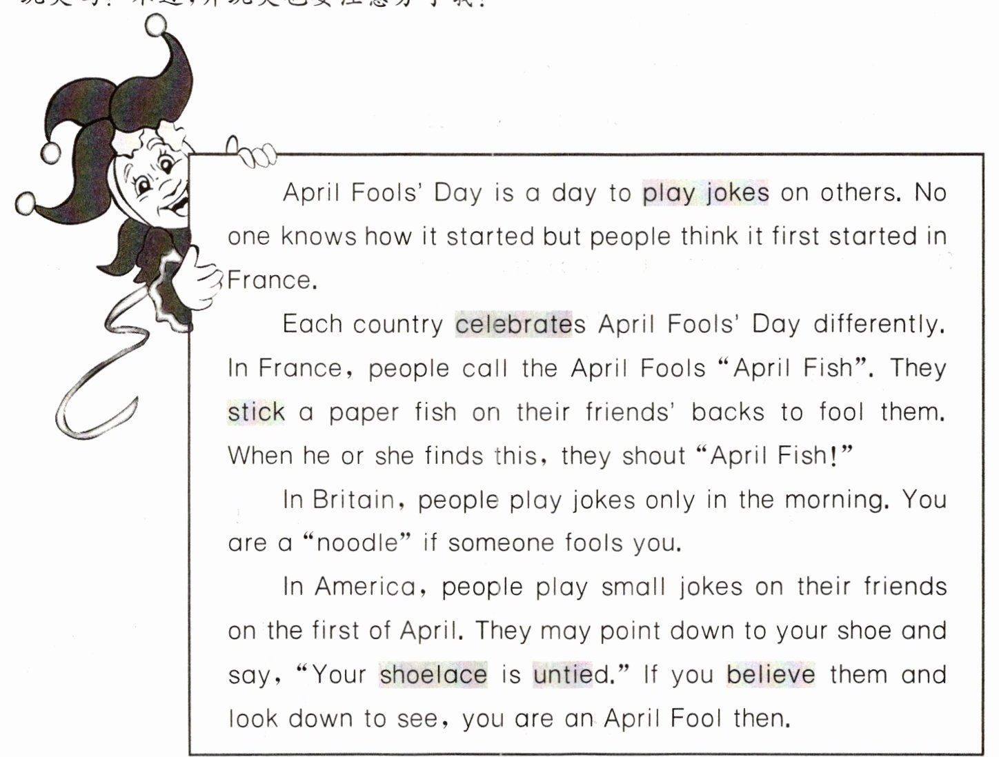 导读:节日总会给我们带来各种欢乐。你喜欢愚人节吗?你会在这一天和别人开玩笑吗?不过,开玩笑也要注意分寸哦!