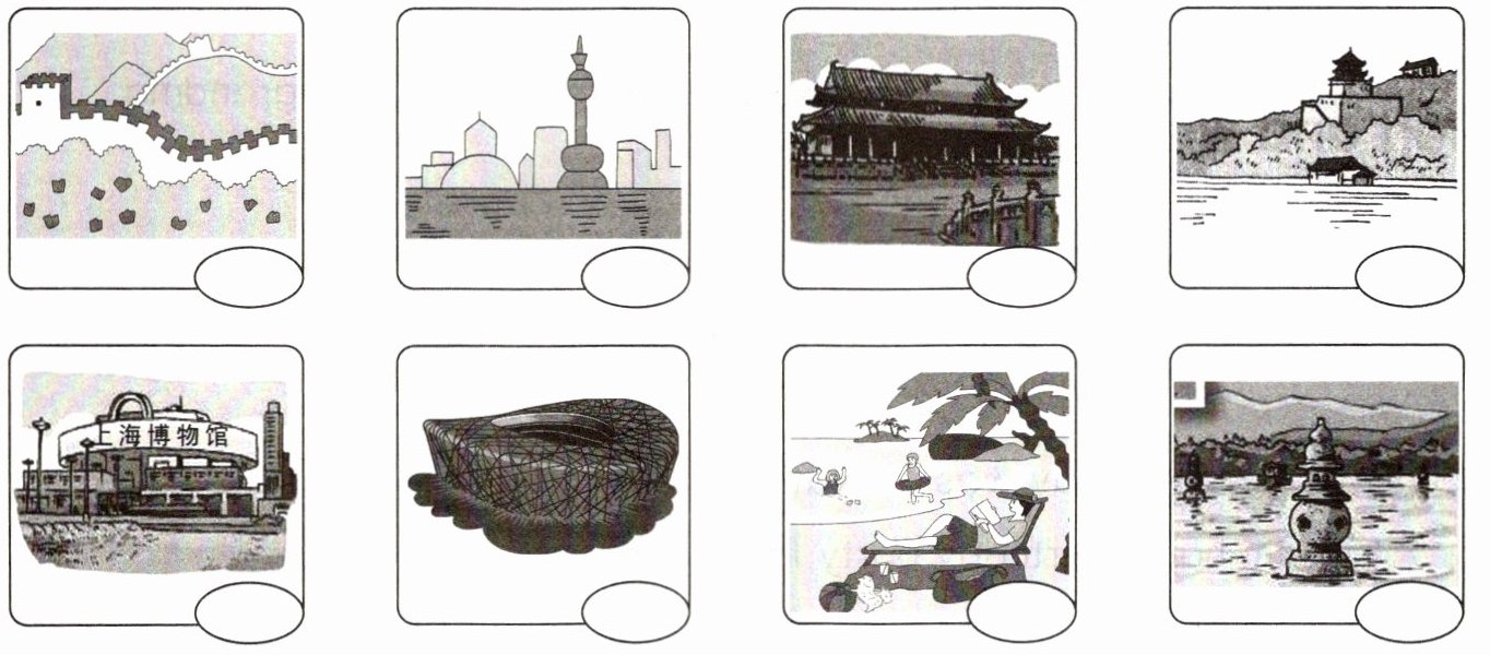 A) 听录音,按所听内容顺序给下列图片标序号。(听两遍)