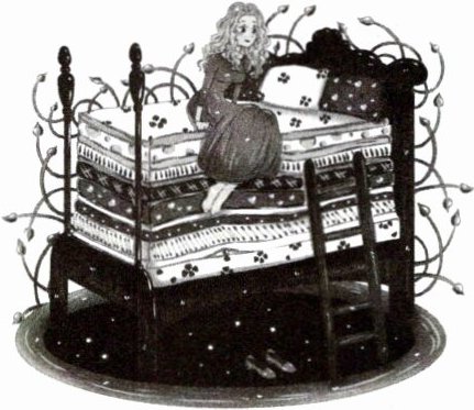That night, the princess slept in the bed. She found the bed very lumpy and she did not sleep well at all.
