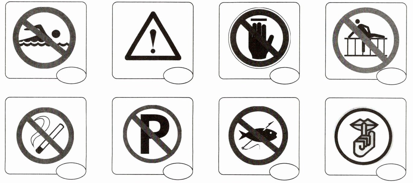A) 听录音,按所听内容顺序给下列标识标序号。(听两遍)