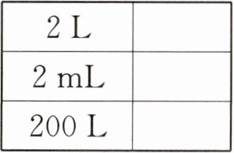 4. 下面的容器各能盛多少水?在合适的答案右面画“√”。