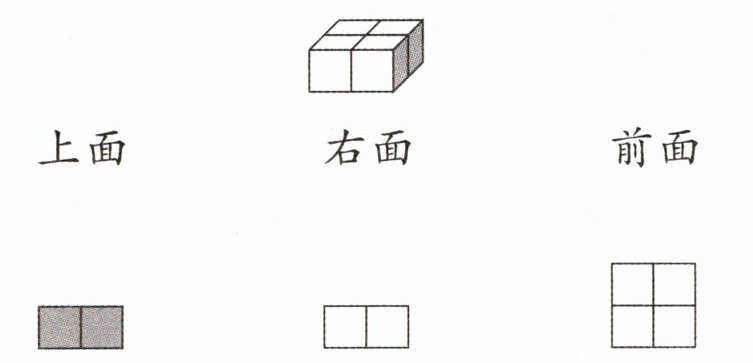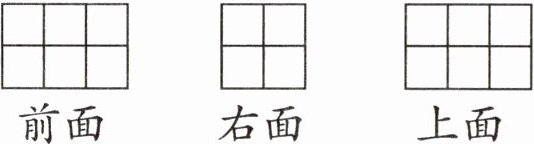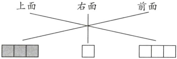 从上面能看到( )个正方形,从前面能看到( )个正方形,从右面能看到( )个正方形。
