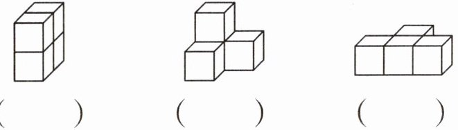 3. 将4个同样大小的小正方体摆成不同图形,哪一种摆法从上面看到的图形是□ □,在正确的摆法下面画“√”。
