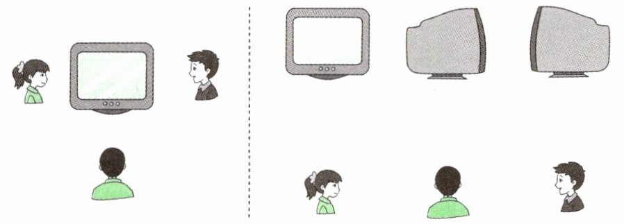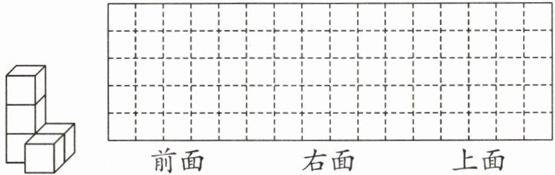 从前面看是( ),从上面看是( ),从右面看是( )。