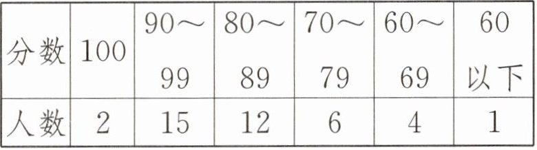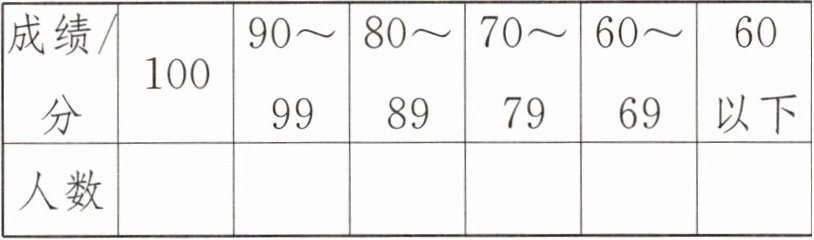 |成绩/分|100|90~99|80~89|70~79|60~69|60以下|