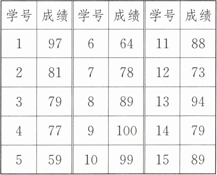 (2)小明的数学考试成绩排在这个班的第十名,他可能考了( )分。