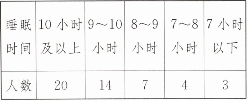 (3)睡眠时间在( )的人数最多,在( )的人数最少,有( )人睡眠时间不足。
