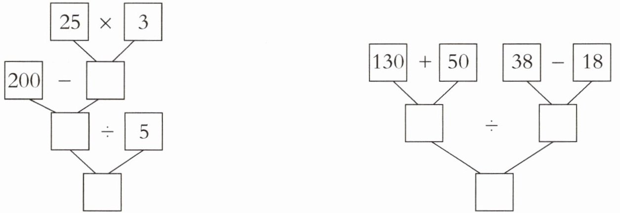 75 125 25 (200-25×3)÷5=25 180 20 9 (130+50)÷(38-18)=9