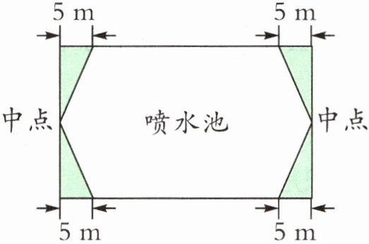 5. 阳光社区进行环境美化,准备在一块长30米、宽16米的长方形空地中间修建一个六边形的喷水池(如右下图),涂色部分为草坪。该喷水池的占地面积是多少平方米?