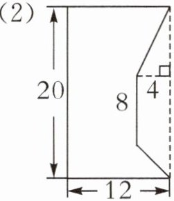 (2)20×12-(8+20)×4÷2=184(平方厘米)