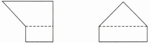 (1)如左下图,这个图形可以看作是由( )形和( )形组合而成的图形,也可以看作是由( )形剪掉一个( )形后得到的图形。