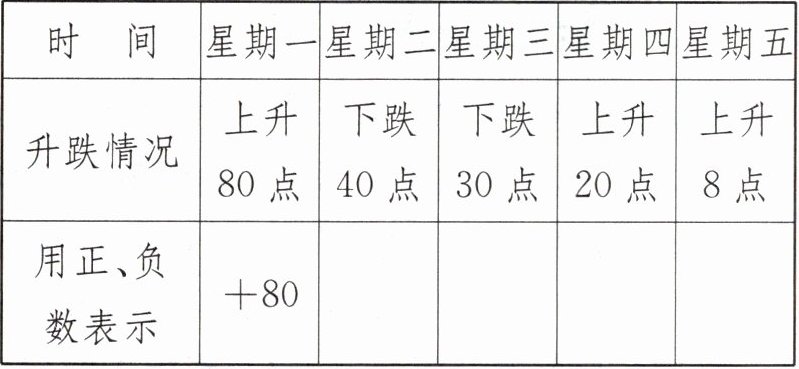 3. 下表记录了某企业五天内股票的升跌情况,请完成下表。