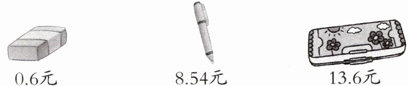 (2)小红买一个文具盒和一块橡皮,她付了15元,应找回多少元?
