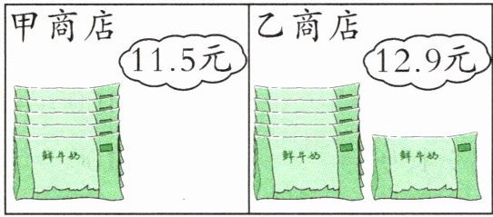 甲:11.5÷5=2.3(元) 乙:12.9÷6=2.15(元) 2.3>2.15,乙商店便宜。