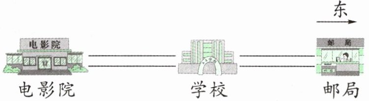 5. 电影院、学校、邮局和公园在一条东西向的街道上。如下图,电影院在学校西面1400米处,记作-1400米;邮局在学校东面1000米处,记作+1000米;公园在电影院东面600米处。