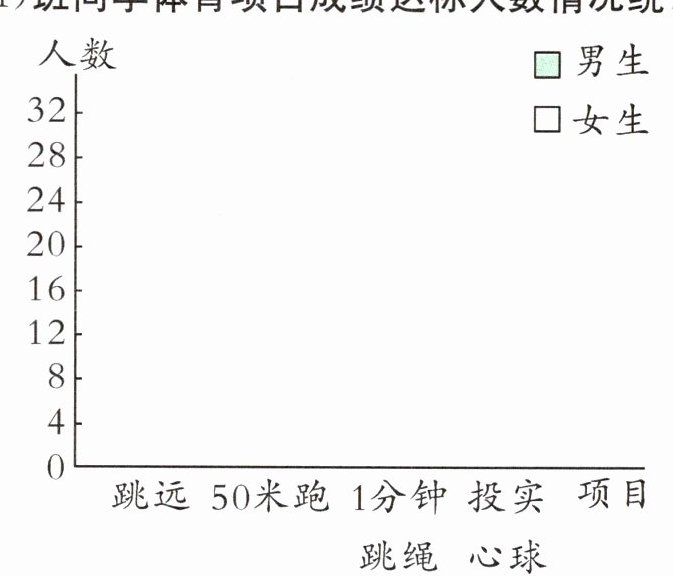 (2)( )项目男生达标人数最多,( )项目女生达标的人数最多。