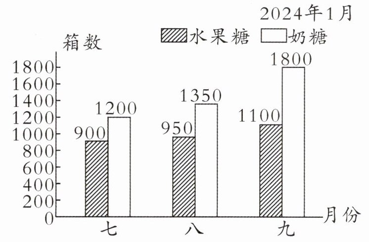 (2)( )月份生产的奶糖最多,( )月份生产的水果糖最少。