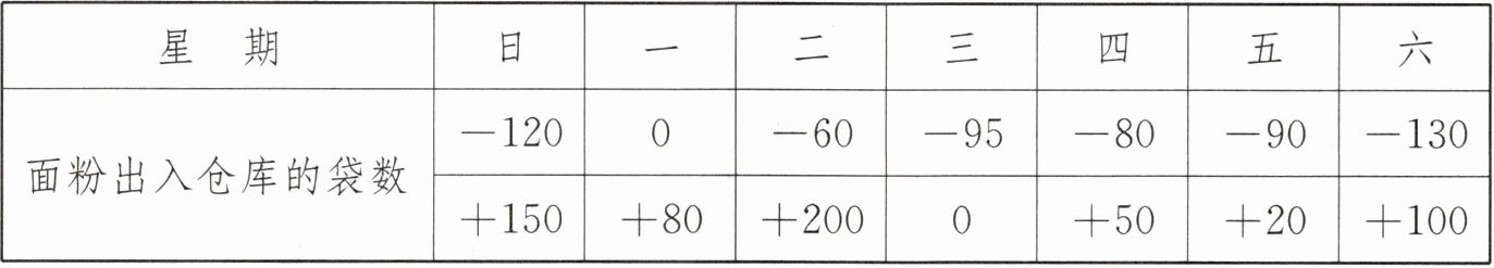 | 面粉出入仓库的袋数 | -120 | 0 | -60 | -95 | -80 | -90 | -130 |