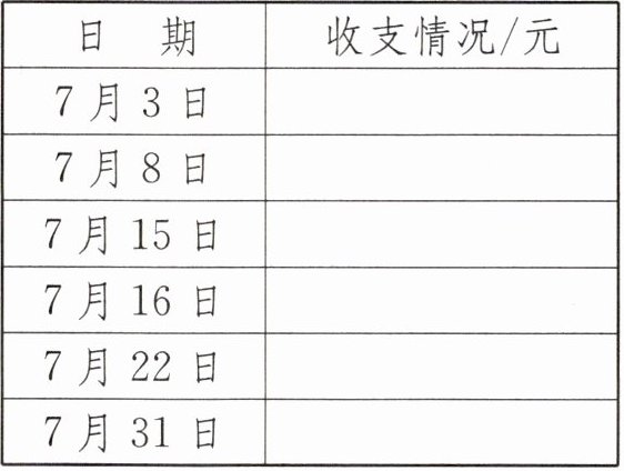 3.请你在表格内用正、负数记录小明家的收支情况。