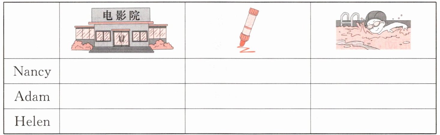 三、听录音,根据所听内容,在表格的相应位置画“√”。