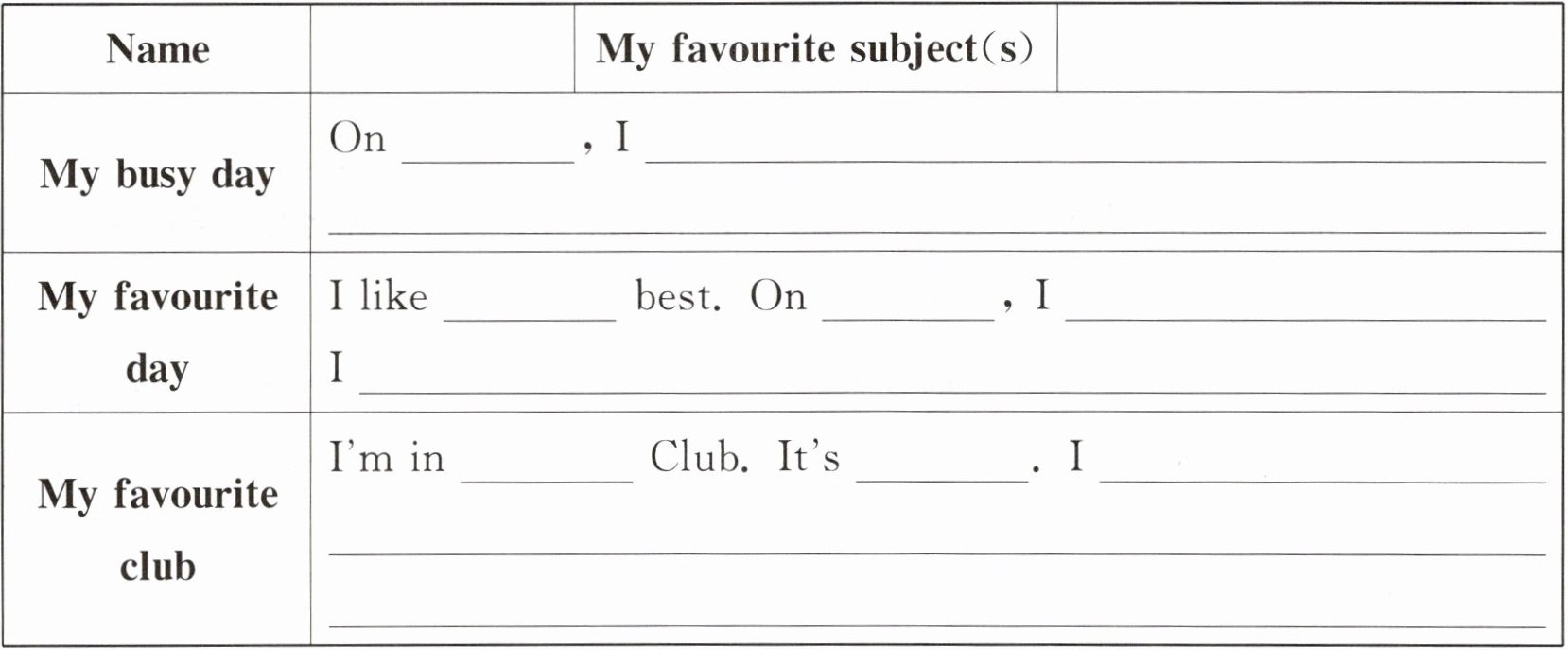 |My favourite club|I'm in ______ Club. It's ______. I ____________|