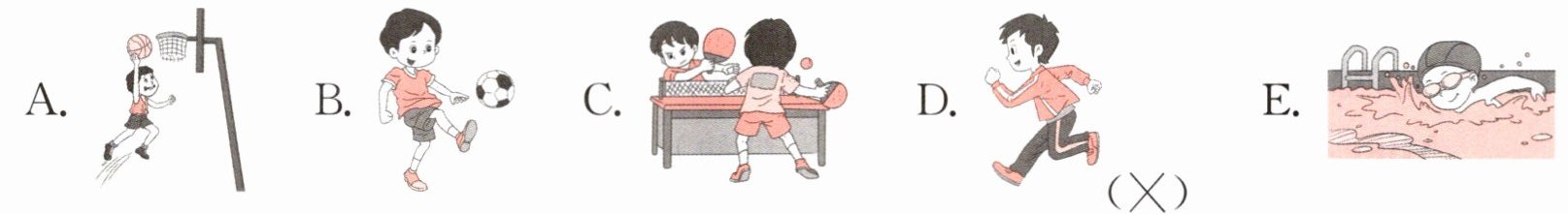二、同学们正在展示自己喜欢的运动,给下列句子或对话选择合适的图片。