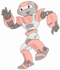 This red robot is Alice. She is very beautiful. You can see a flower in her hand. She is clever too. She can talk with you.