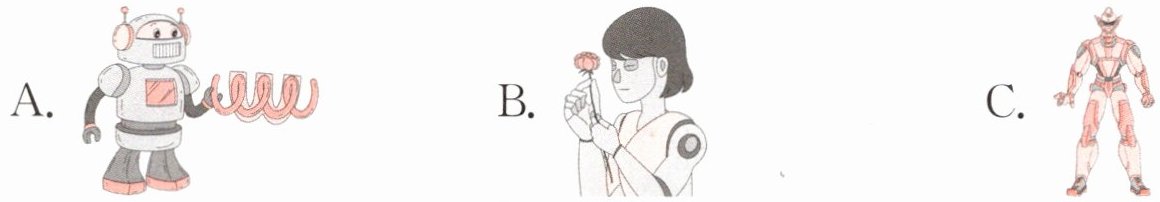 This robot is a boy. His name is Tom. He is tall and big. He has a big body and a small head(头). He can clean the house and open the door.
