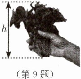 9 我国科研人员自主培育出适合我国植胶区环境特点的橡胶苗新品种.如图所示是科研人员手拿橡胶苗的场景,该橡胶苗的高度h约为( ).