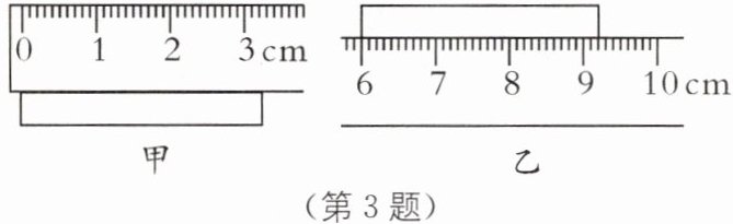 3 如图甲、乙所示是同一把刻度尺的不同部分,这把刻度尺的分度值是______cm.用这把刻度尺来测量物体的长度,图中测量方法正确的是______(填“甲”或“乙”),用正确方法测得的物体长度是______cm.