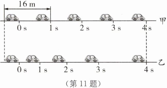 11 如图所示记录了甲、乙两辆汽车在平直公路上同时自西向东行驶时的运动情况,下列说法正确的是( ).