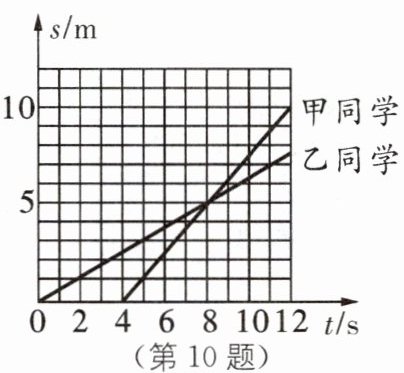 10 甲、乙两同学沿平直路面步行,他们的运动路程与时间变化的关系如图所示,下面说法中错误的是( ).