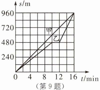 9 甲、乙两同学同时从学校出发,步行到少年宫,刚好同时到达,他们的路程 s 与时间 t 的关系图像如图所示.下列判断正确的是( ).