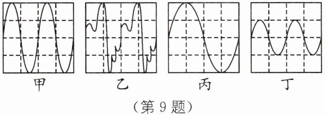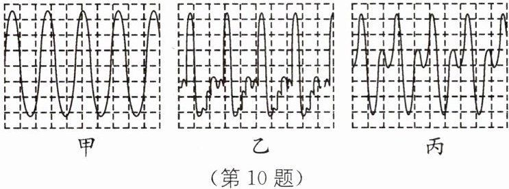 10 如图所示是甲、乙、丙三种乐器发出的C调1(do)在同一示波器上显示的波形图,下列关于它们发出声音的特性描述正确的是( ).