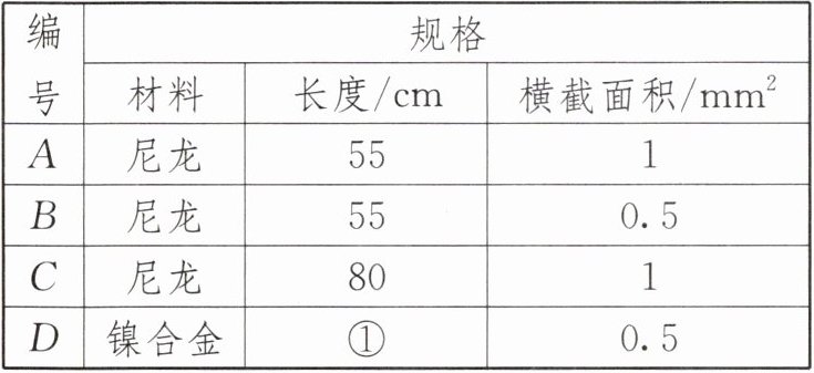 | 编号 | 规格 | 材料 | 长度/cm | 横截面积$/mm^2 $|