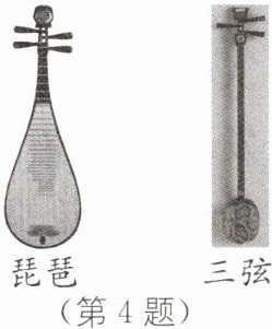 4 苏州评弹是苏州的“文化三绝”之一,被纳入“第一批国家级非物质文化遗产”名录,伴奏乐器主要是琵琶与三弦,如图所示.