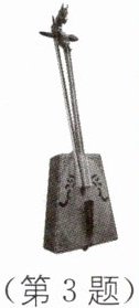 3 传统文化 传统乐器马头琴 (2023·阜新中考)马头琴是蒙古族人民喜爱的传统乐器.如图所示,琴身木制,长约一米,有两根弦,共鸣箱表面呈梯形.