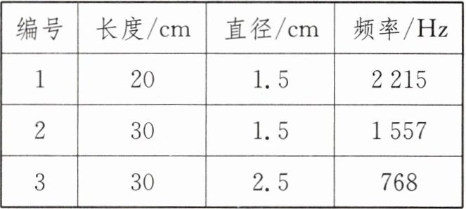 | 编号 | 长度/cm | 直径/cm | 频率/Hz |