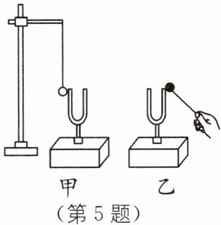 5 如图所示,在教室里,小明敲响乙音叉时,与甲音叉的叉股接触的乒乓球会弹起来,这一现象既可以说明发声的物体在______,也能说明声音可以在______中传播;若在月球表面上进行此实验,则______(填“还能”或“不能”)观察到上述现象,这是因为______. 该实验中,巧妙利用乒乓球将音叉叉股的微小变化进行放大,使实验现象更明显,易于观察,这种研究问题的方法称为转换法. 以下研究物理问题的方法不是采用这种方法的是______.