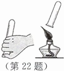 22 跨学科 氢气验纯与声现象 如图所示,化学老师检验氢气纯度时,用拇指堵住集满氢气的试管口,靠近火焰,移开拇指点火,会发出尖锐的爆鸣声或很小的声音,同时火焰晃动,化学老师根据声音的不同来判断氢气纯度,说明声可以传递______,火焰晃动说明声可以传递______(以上两空填“信息”或“能量”). 其中“很小”是指声的______小(填声音的特性),“尖锐”是指声音的______高(填声音的特性).