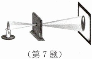 7 用蜡烛作为光源,在木板上钻一个小孔,发现光线透过小孔在墙壁上形成倒立的像,下列说法错误的是( ).