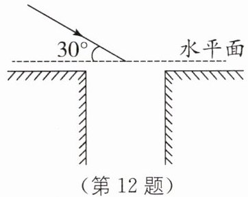 12 小明想用一块平面镜使与水平面成$30^{\circ}$角的太阳光竖直射入井中(如图所示),则反射光线与入射光线的夹角为______,镜面与水平面夹角为______(填锐角).