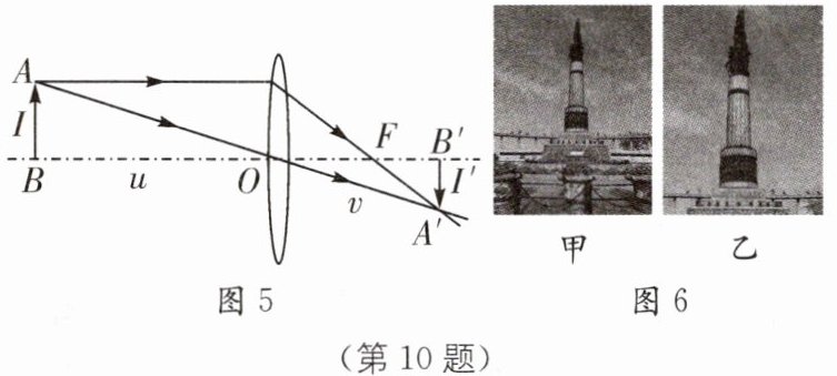 (3)如图6所示,用两个焦距不同的照相机在同一位置给防洪纪念塔拍摄了甲、乙两张照片,则拍摄照片______时,所用照相机镜头焦距较小.