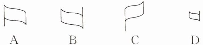 7 如图所示,由发光二极管组成的红旗图案放在凸透镜之前,与凸透镜的距离在一倍焦距和二倍焦距之间,则红旗在光屏上所成清晰的像可能是下列图中的( ).