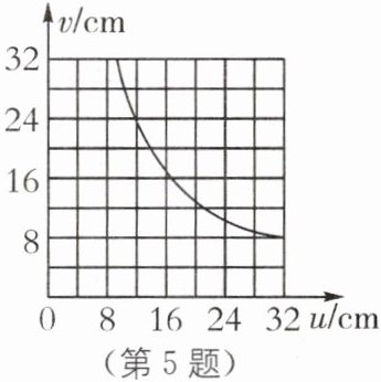 5 在探究凸透镜成像的规律实验中,如图所示是像到凸透镜的距离v跟物体到凸透镜的距离u之间的关系图像,由图像可知( ).