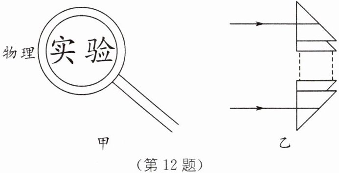 (2)小红查阅资料后了解到,用如图乙所示的三棱镜组合可以描述该透镜对光的作用,请在图乙中画出平行光入射两个三棱镜后出射光线的大致方向.