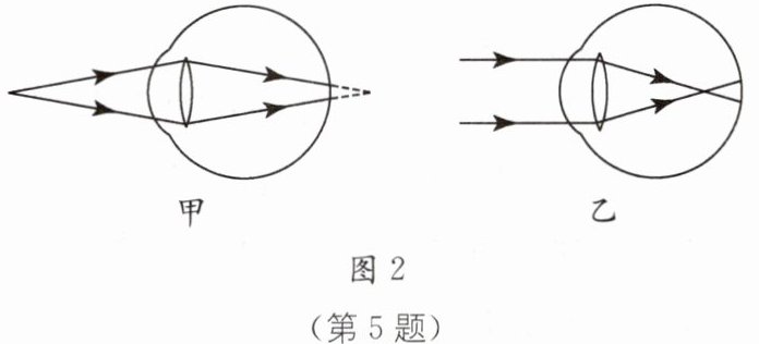 5 教材P77图3-29·拓展 如图1所示,小华拿出手机,保持手机到眼睛的距离不变,开启屏幕打开手机前置摄像头,通过摄像头成的像与屏幕关闭时成的像相比______(填“变大”“变小”或“不变”),由于不合理使用手机,小华患上了近视眼,图2中______(填“甲”或“乙”)是近视眼的光路图。